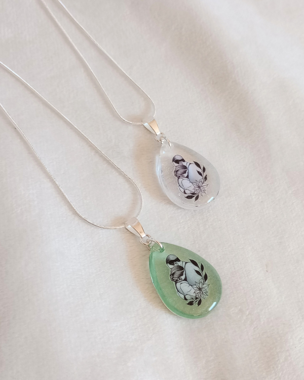 Materiales: resina y plata. Medidas: 2 x 2,5 cm.