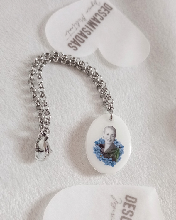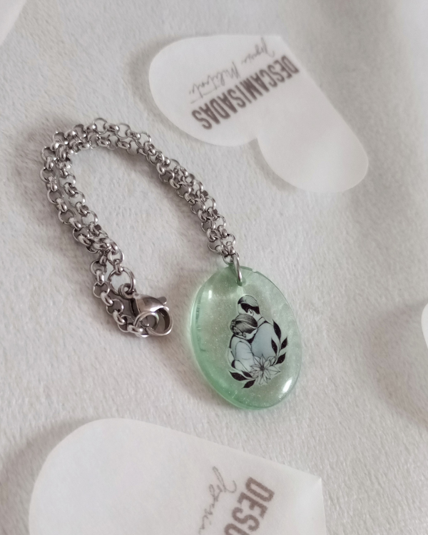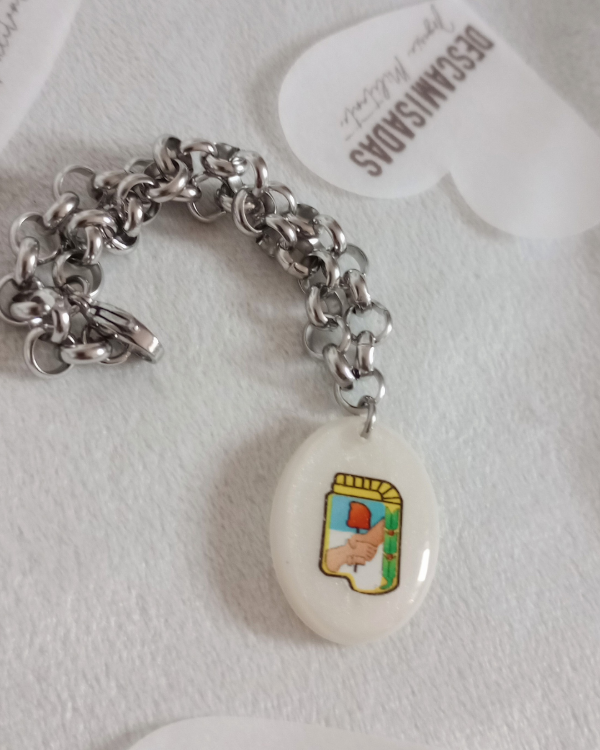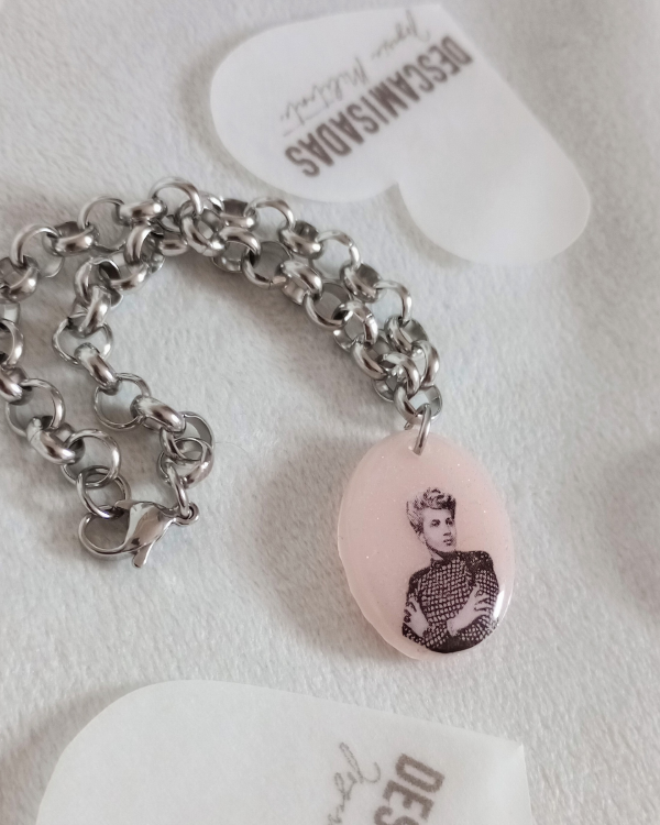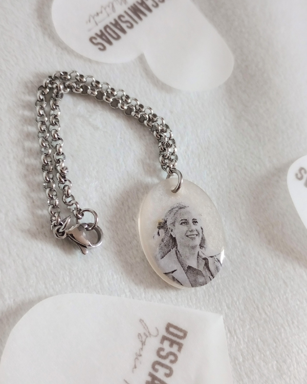 Pulsera de acero quirúrgico con dije ovalado de resina.